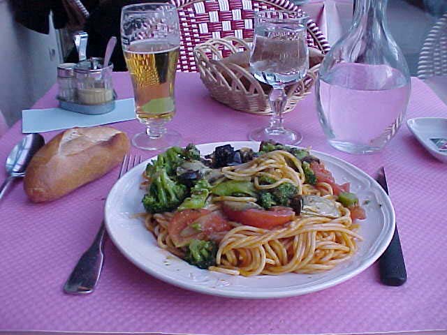On the way to the Grand Arch I discovered a very nice Italian Restaurant, the Pizza Pina, 92 Av Charles De Gaulle. Classy service and relatively inexpensive food. I had a great Spaghetti de la Primavera: a tomato based sauce, brocolli, eggplant, and artichoke.